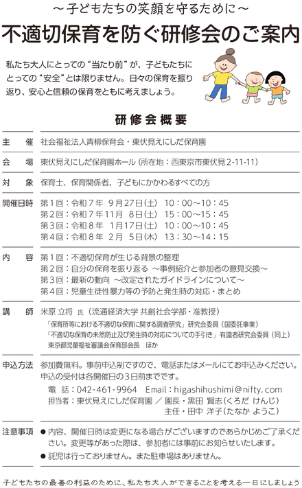 詳しくは「園の概要」のページの「一時保育」をご覧ください。